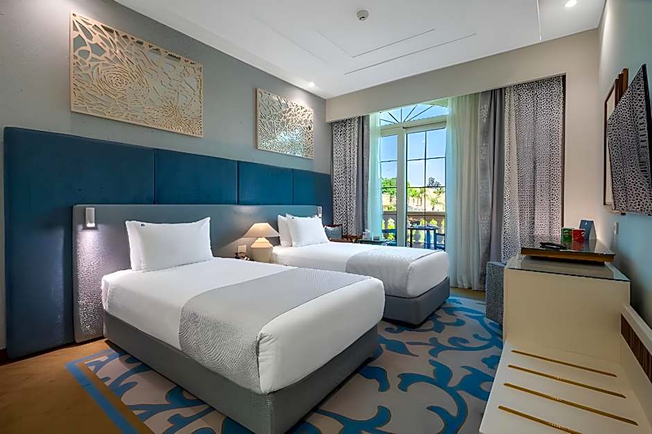 The spacious twin/double room provides air conditioning, a mini-bar, a balcony with garden views as well as a private bathroom featuring a bath.